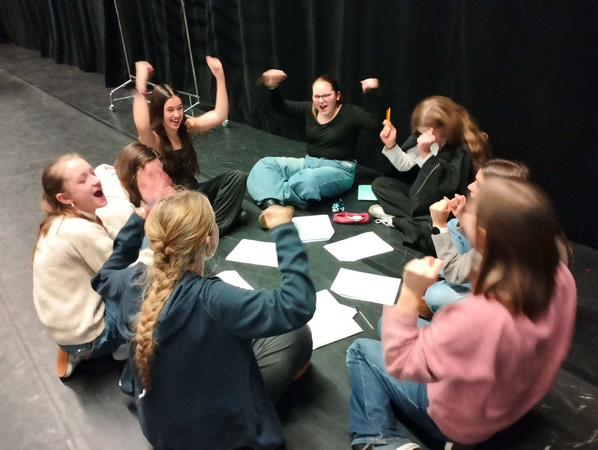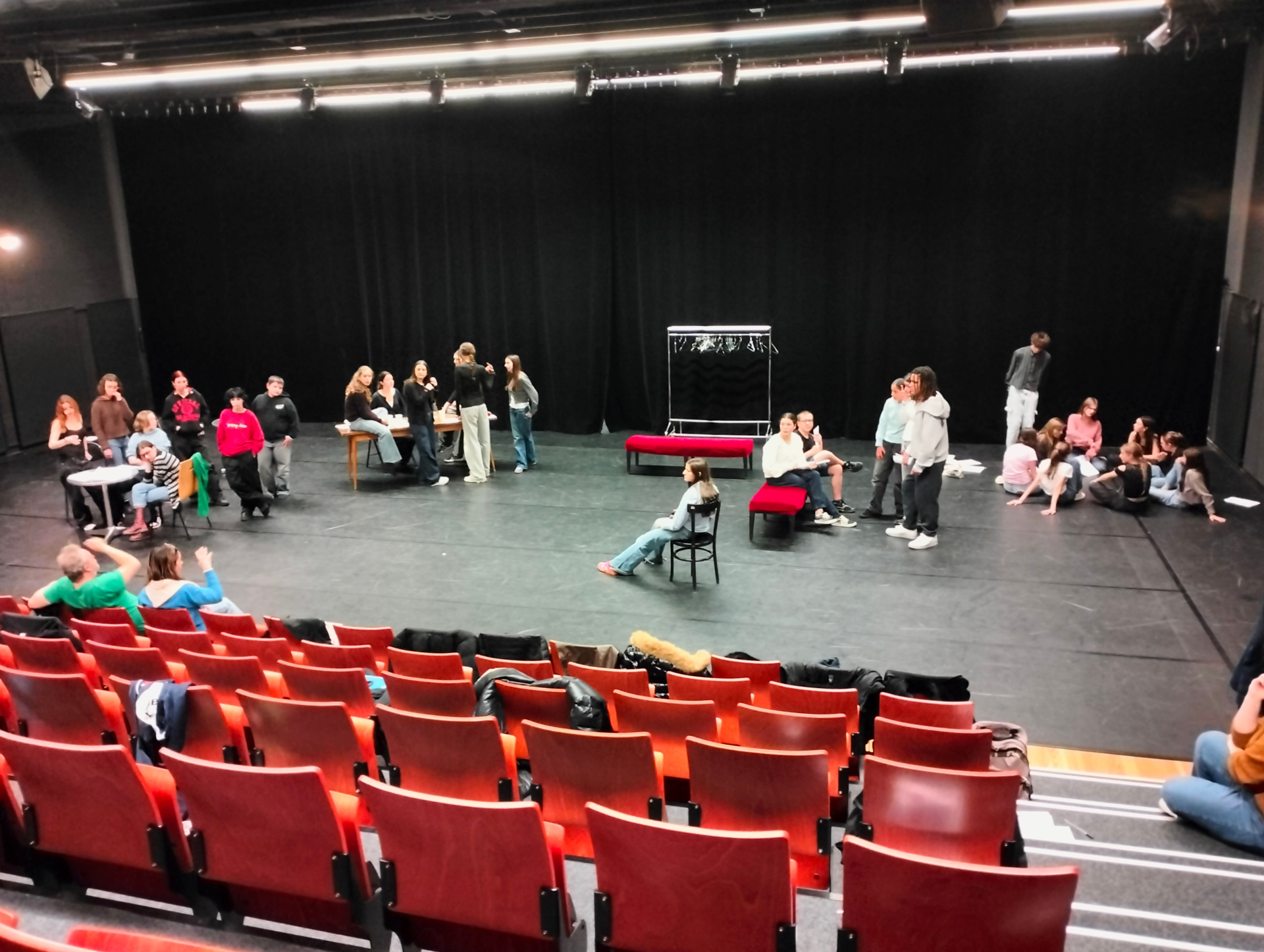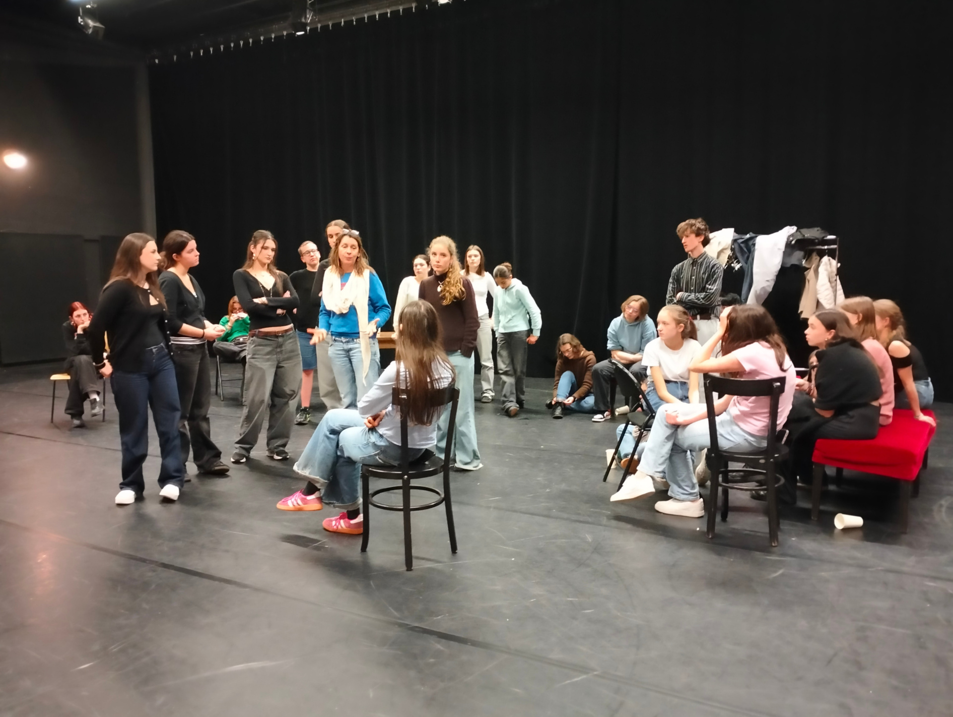 Les premières journées ont permis d’aborder les déplacements au plateau, les sensations et le langage corporel, puis le "mentir vrai, pour aboutir à de petites improvisations à deux ou trois.